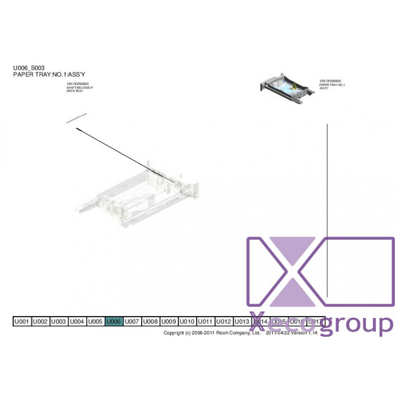 Ricoh D0292850 PAPER TRAY:NO.1:ASS Y - U006_S003