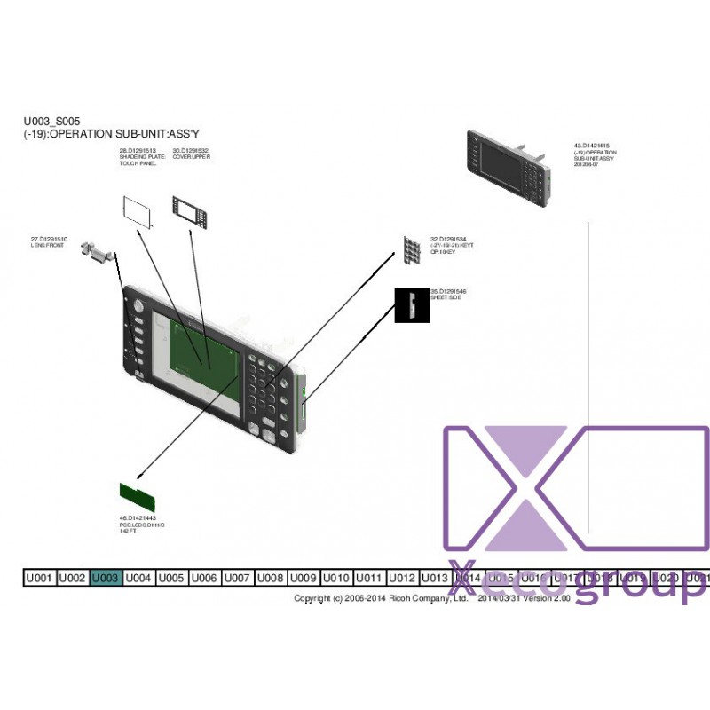 Ricoh D1291513 SHADEING PLATE:TOUCH PANEL - U003_S001