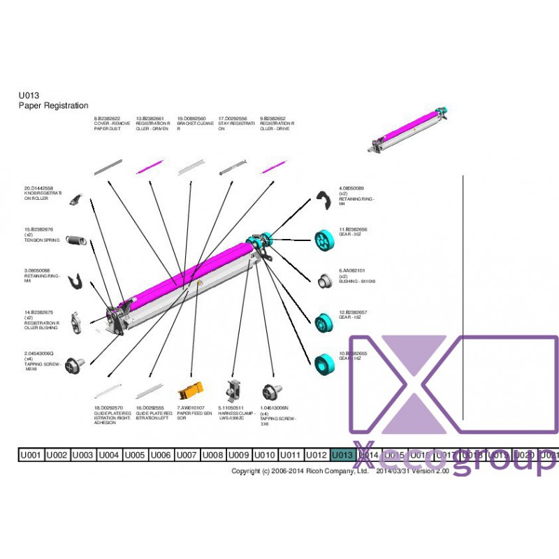 Ricoh D1442558 KNOB:REGISTRATION ROLLER - U013