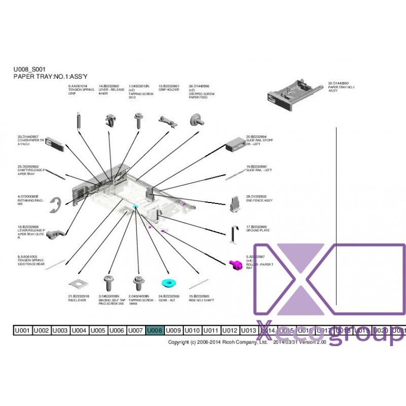 Ricoh D1442896 STEPPED SCREW:PAPER FEED - U008_S001