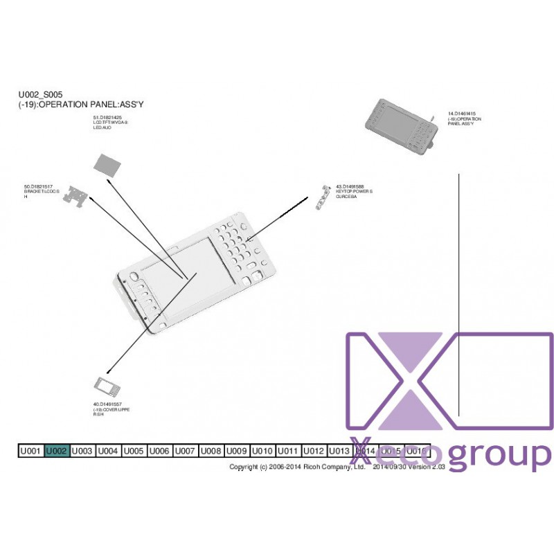 Ricoh D1461415 (-19):OPERATION PANEL:ASS Y - U002_S005