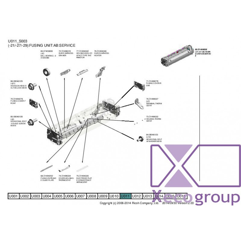 Ricoh D1464006 (-21/-27/-29):FUSING UNIT:AB:SER VICE - U011_S002