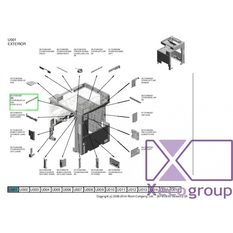 Ricoh D1501267 COVER:RIGHT:UPPER - U001