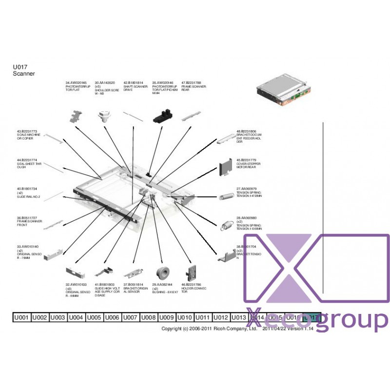 Ricoh B1801814 SHAFT:SCANNER:DRIVE - U017