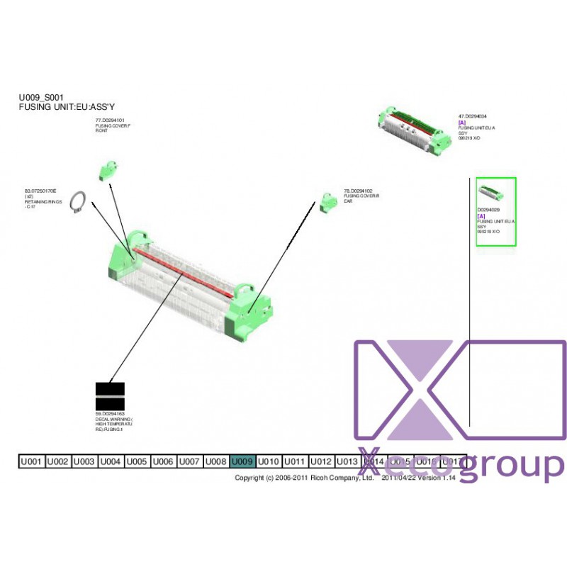Ricoh D0294101 FUSING COVER:FRONT - U009_S001