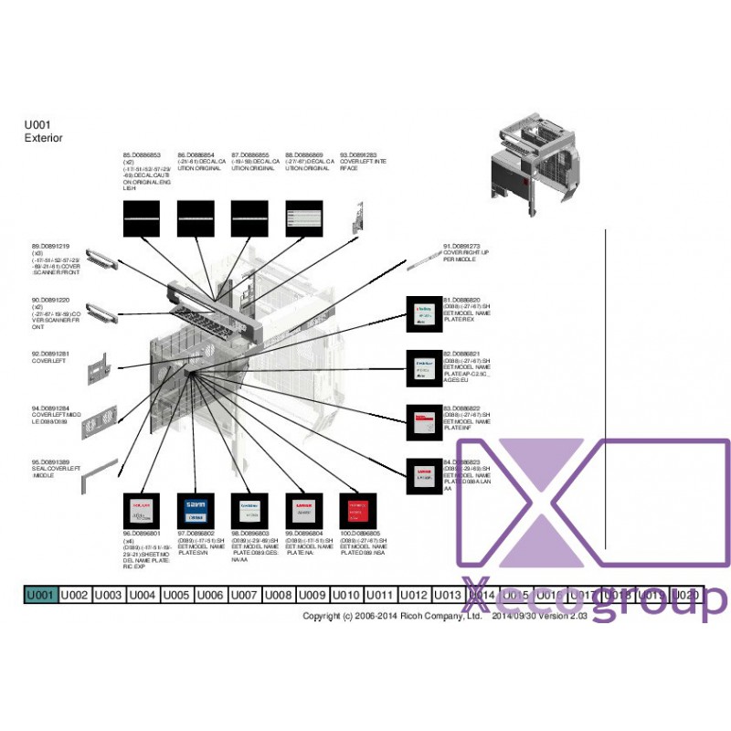 Ricoh D0896803 (D089):(-29/-69):SHEET:MODEL NA ME PLATE:D089:GES:NA/AA - U001