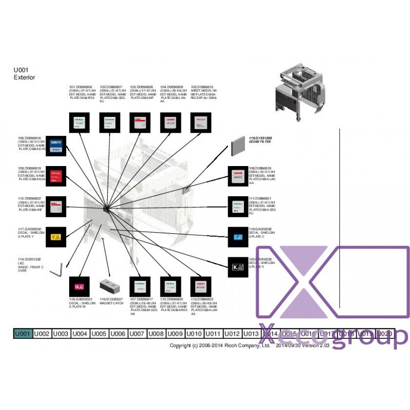 Ricoh D0896816 (D089):(-52/-57):SHEET:MODEL NA ME PLATE:D089A:SVN - U001