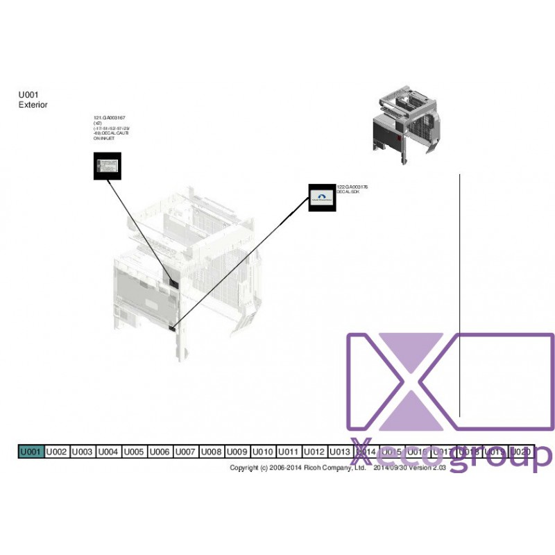 Ricoh GA003167 (-17/-51/-52/-57/-29/-69):DECAL:CA UTION:INKJET - U001
