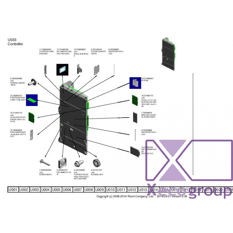 Ricoh D1435710 (D143):PCB:D143:SERVICE:ASS Y:(for D143) - U033